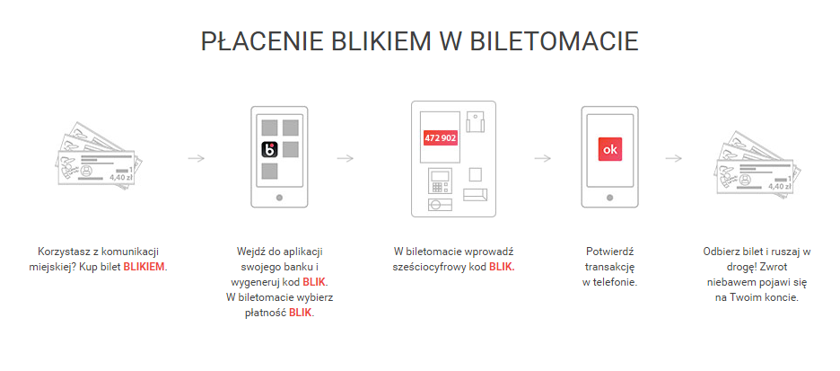 Od 12 lipca pasażerowie MPK-Łódź mogą zakupić wszystkie rodzaje biletów dostępnych w 690 biletomatach mobilnych oraz 16 biletomatach stacjonarnych przy pomocy aplikacji z BLIKIEM, której obsługa jest bardzo prosta: musimy mieć zainstalowaną aplikację mobilną banku - uczestnika BLIKA. System generuje nam kod, który wpisujemy na ekranie biletomatu. Transakcję potwierdzamy na swoim smartfonie. Kod ważny jedynie 2 minuty gwarantuje nam pełne bezpieczeństwo.